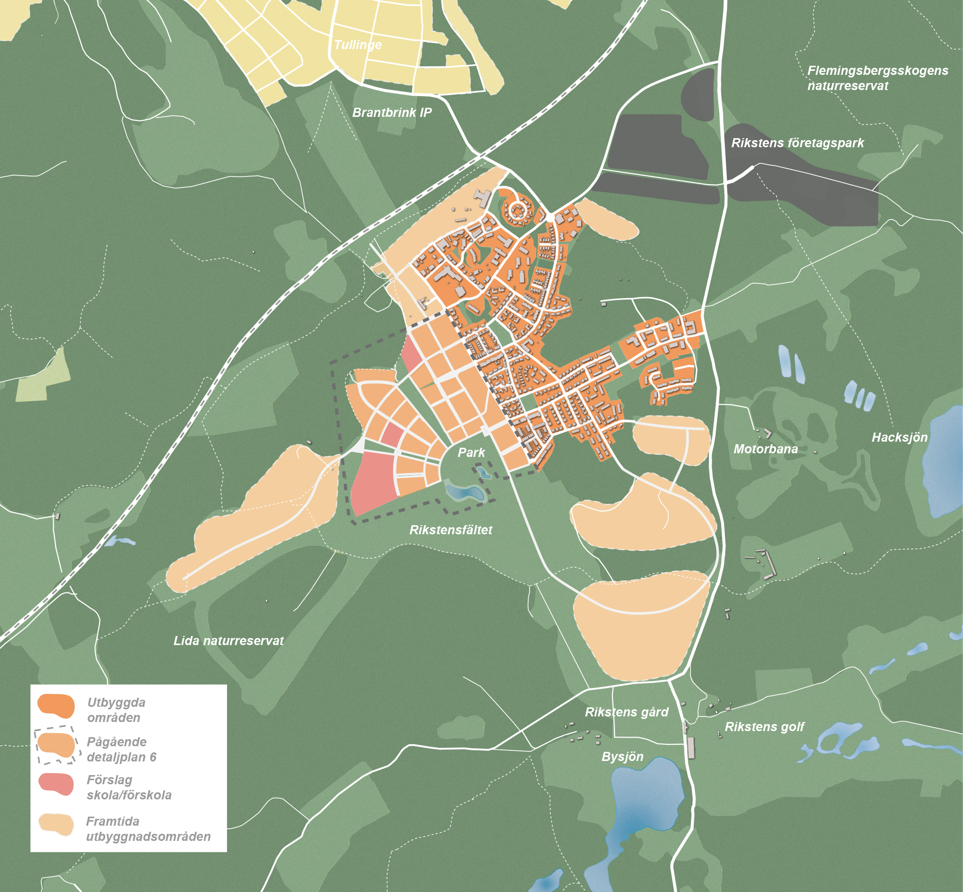 Just nu pågår planering av detaljplan 6 i Riksten. I etappen planeras för en skola för årskurs F-9, två förskolor, LSS-boende samt ett vårdboende. Det kommer att finnas ca 1200 nya bostäder både i radhus, kedjehus och flerbostadshus. Husen ligger samlade i kvarter med gemensamma gårdar där en lugn och grön miljö skapas. Bebyggelsen kommer att ligga mot skogen och fältet och har mycket god tillgång till naturen.