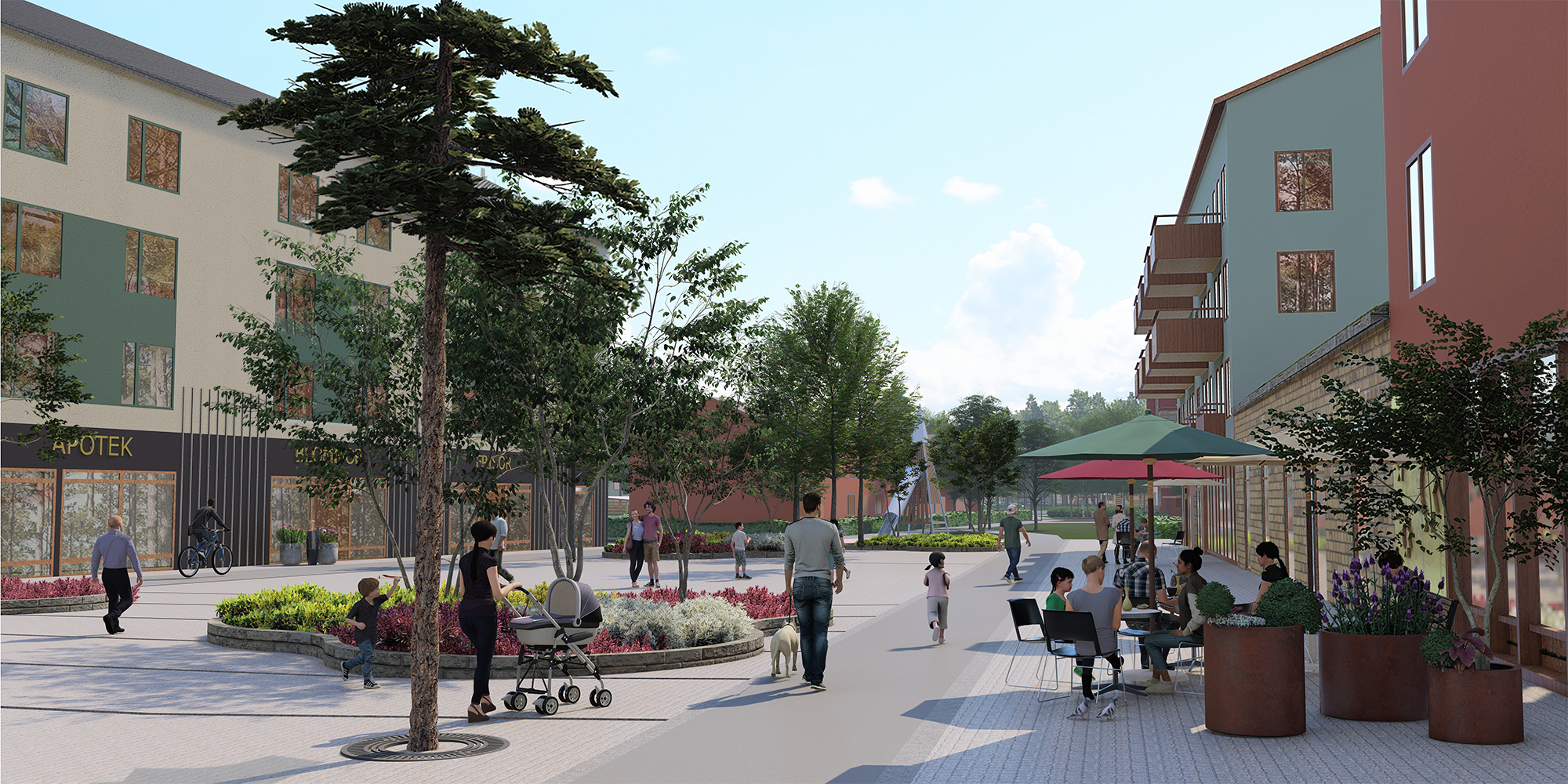Etapp 6 ligger centralt i den planerade stadsdelen och kommer att ha ett torg med lokaler för butiker och restaurang. Torget blir en samlingspunkt för hela stadsdelen, där man till exempel skulle kunna hålla marknad eller loppis. Här finns planteringar och träd, sittplatser, plats för cyklar, uteserveringar och en mindre lekyta för de små. I denna etapp planeras även för en större matbutik intill torget. Här finns även busshållplats för utökad busstrafik till stadsdelen.